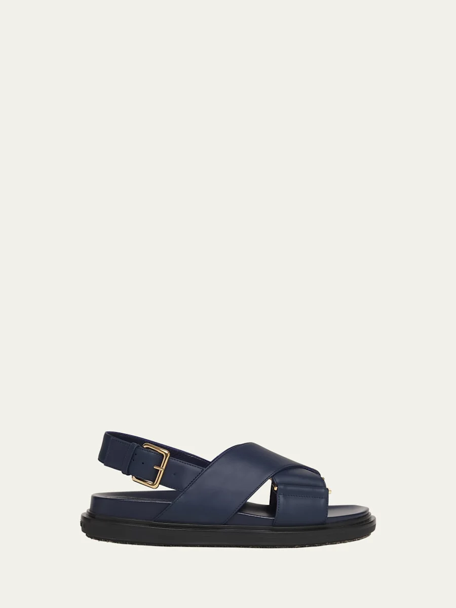 Marni "Fussbet" sandals in leather 0.25 in / 10 mm flat heel Open toe Crisscross vamp Adjustable slingback strap with buckle Rubber outsole Leather lining Made in Italy Online Inquiries: BGS21_X663Q| Store Inquiries: #4581917