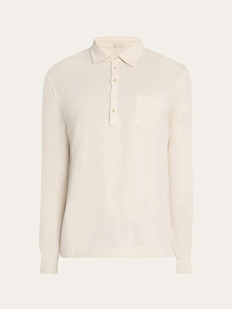 Men's Pique Cotton and Cashmere Long-Sleeve Polo Shirt