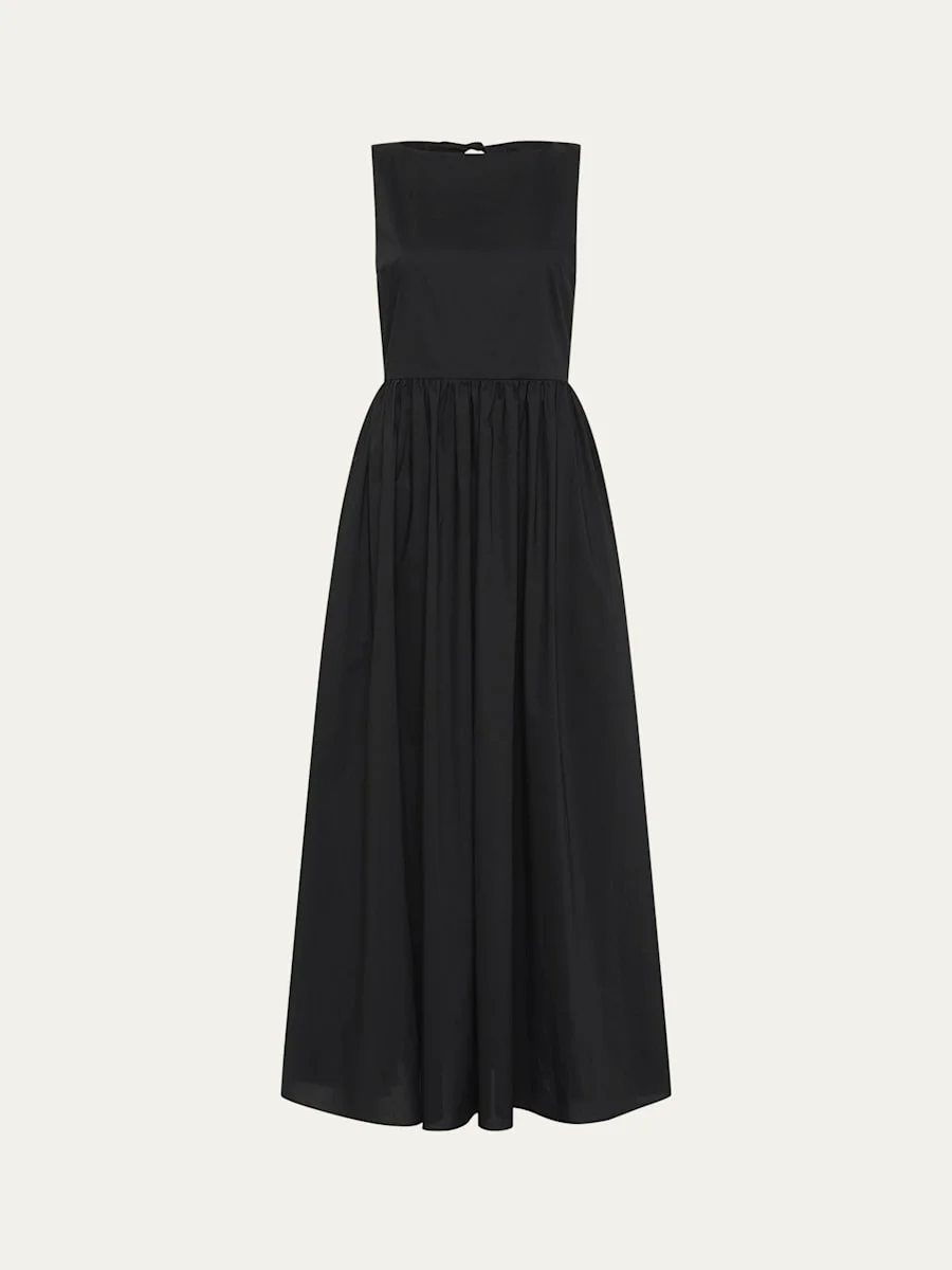 Matteau dress featuring an open back with bow ties for a delicate look and feel Bateau neckline Sleeveless Side seam pockets Hem falls below the knee A-line silhouette Organic cotton Made in Australia Online Inquiries: BGS21_T67T7| Store Inquiries: #4923186