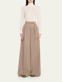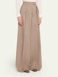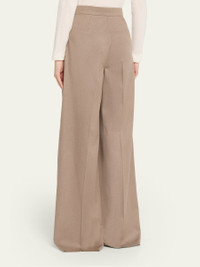 Max Mara "Baden" trousers are crafted from virgin wool finished with a double pleated front and a sharp trouser crease, offering a sophisticated menswear-inspired look with a refined finish High waist Angled side slip pockets Wide legs Full length Hook-tab/zip fly Virgin wool Dry clean Made in Italy Online Inquiries: BGS21_BAA0E| Store Inquiries: #5065298