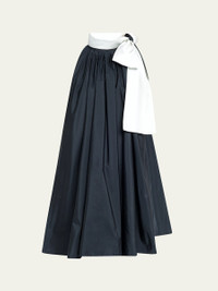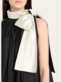 Max Mara "Beber" gathered dress featuring a contrast neck bow Mock neckline Sleeveless Shift silhouette Mini length Slipover style Polyester/silk Dry clean Made in Italy Online Inquiries: BGS21_B9YJZ| Store Inquiries: #5002110