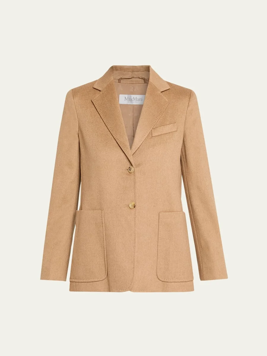 Max Mara "Belluno" jacket is crafted from pure lightweight camel wool with a tailored pick stitch, embodying timeless elegance and exceptional craftsmanship Notch lapels; single-breasted front Long sleeves; button cuffs Chest welt pocket Hip patch pockets Straight fit Walking vent back Wool Dry clean Made in Italy Online Inquiries: BGS21_BAA0D| Store Inquiries: #5065297