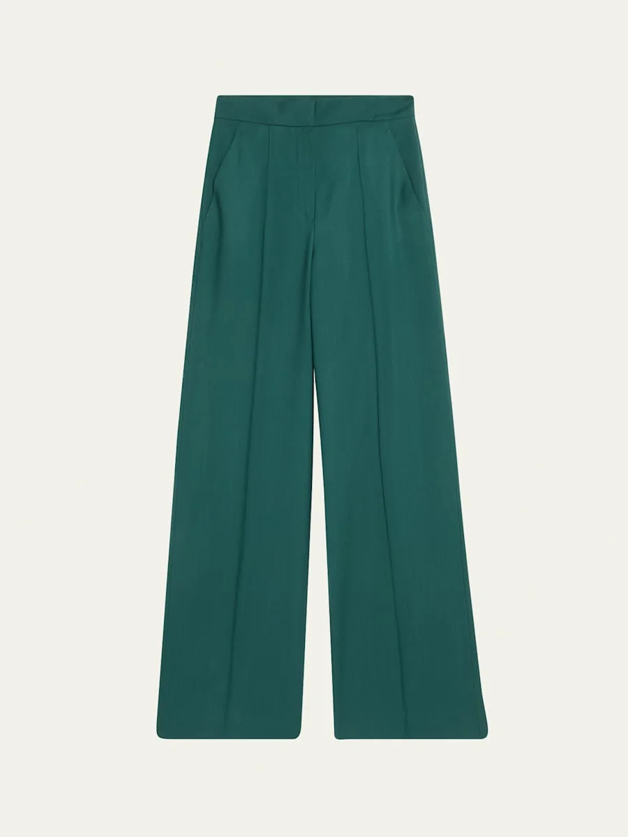 Max Mara "Fernet" trousers feature a tailored fit and refined silhouette High rise Full length Wide legs Side slip pockets Tab/zip fly Virgin wool/cashmere Machine wash cold Made in Italy
