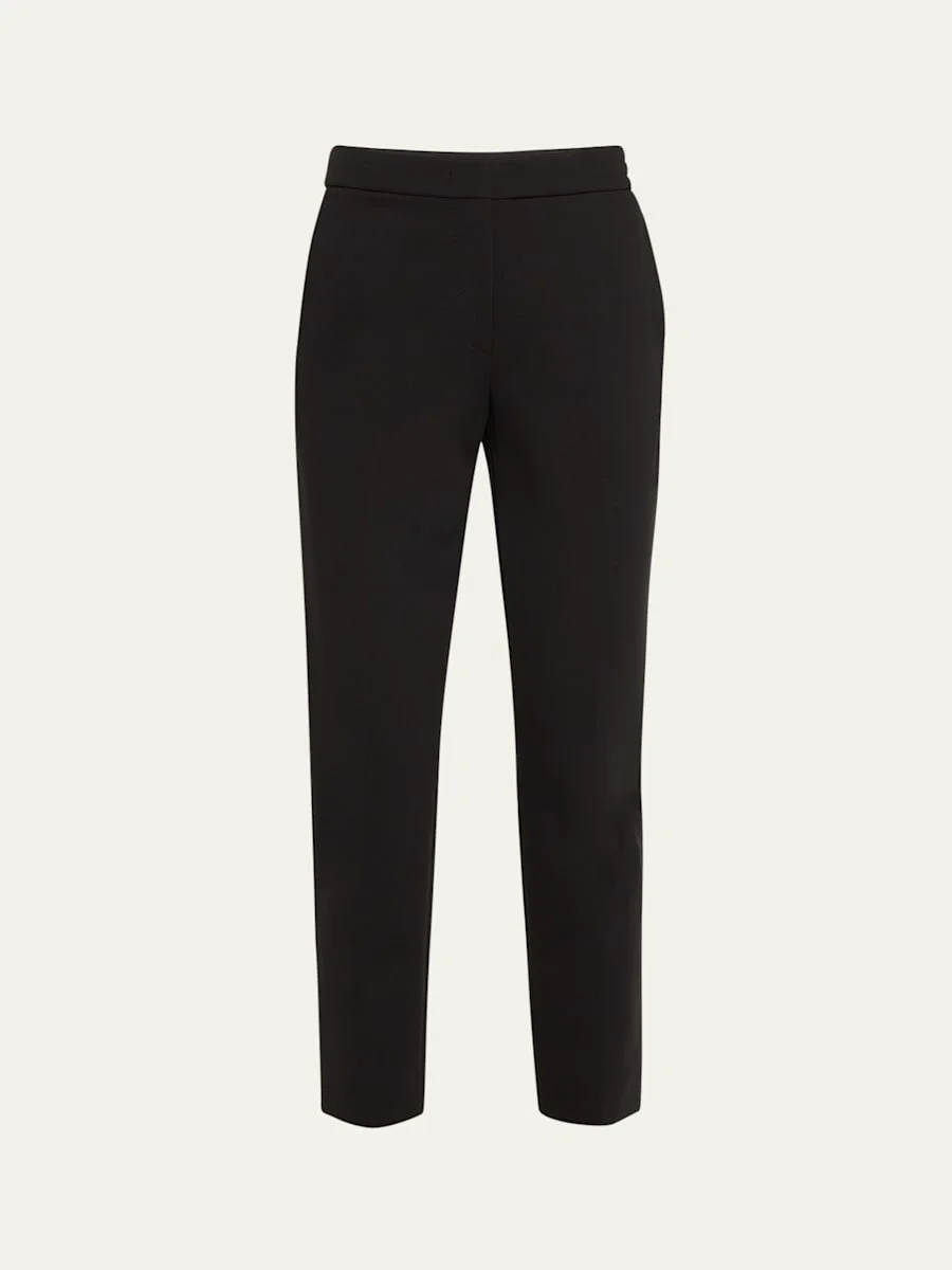 Maxmara "Pegno" pants in stretch jersey. Mid-rise. Side slip pockets. Skinny-leg fit. Cropped at calves. Hook/zip front. Viscose/nylon/spandex. Imported. Model is 5'10"/177cm. Online Inquiries: BGS21_B9L6Q| Store Inquiries: #3051421