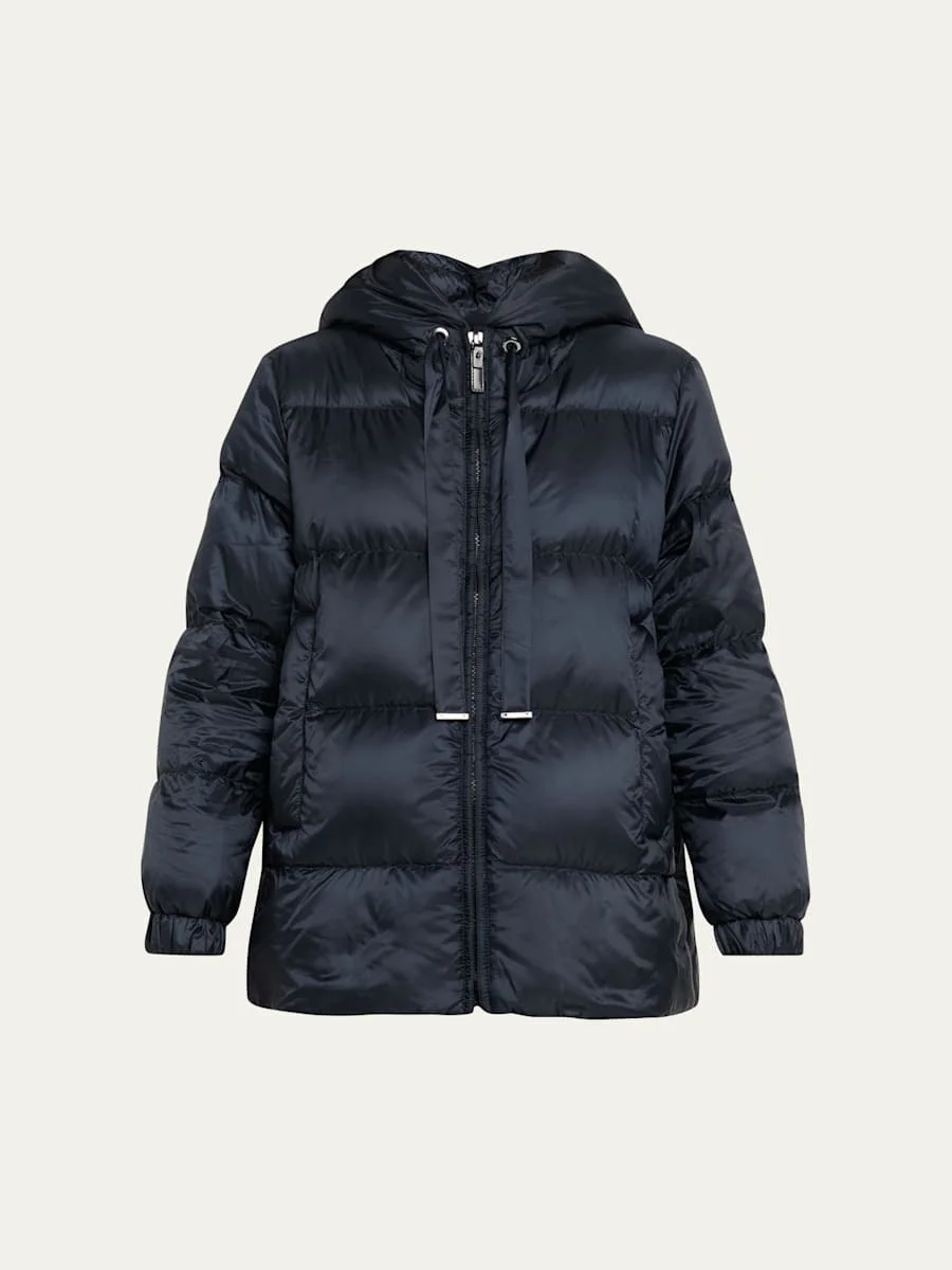 Max Mara "Seia" down jacket is crafted of weather-resistant canvas quilted in horizontal stripes Drawstring hooded neckline; zip front Long sleeves; elasticized cuffs Hip welt pockets Oversized fit Hem falls below the hip Polyester Fill: Feather/Down Made in Italy Online Inquiries: BGS21_BAB9W| Store Inquiries: #5072297