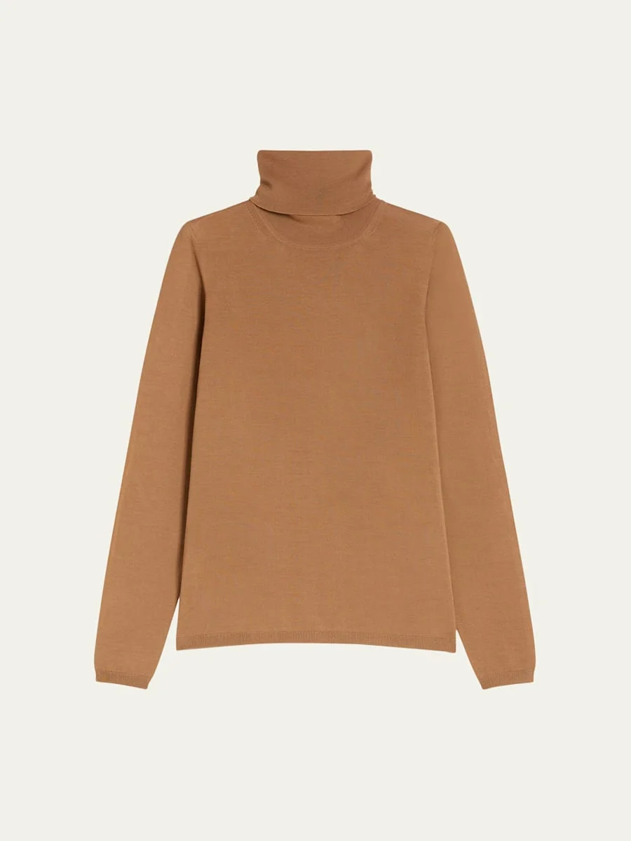 Max Mara Classic sweater in a soft wool knit Turtleneck Long sleeves Slim fit Ribbed cuffs and hem Pullover style Virgin wool Dry clean Made in Italy Online Inquiries: BGS21_BA9ZV| Store Inquiries: #5065273