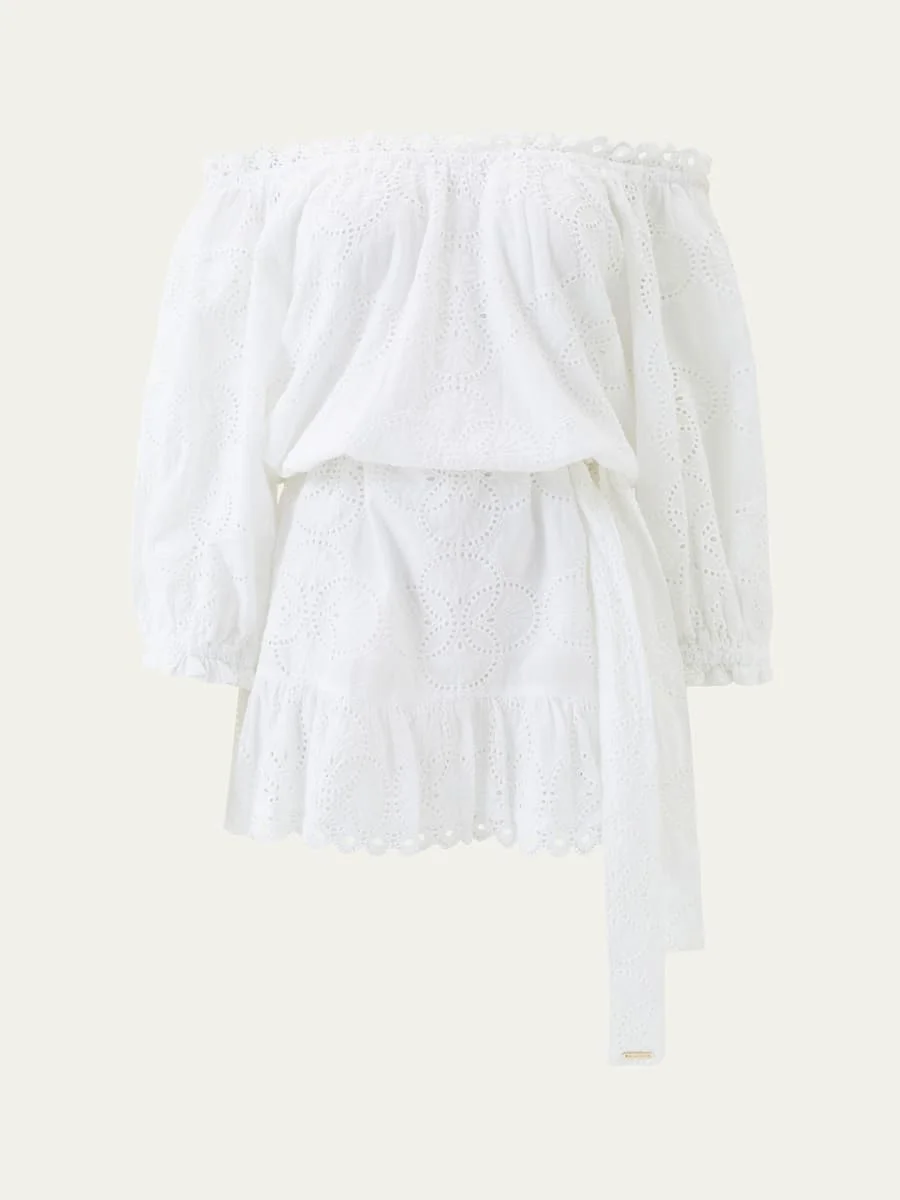 Avi Eyelet Off-Shoulder Mini Dress