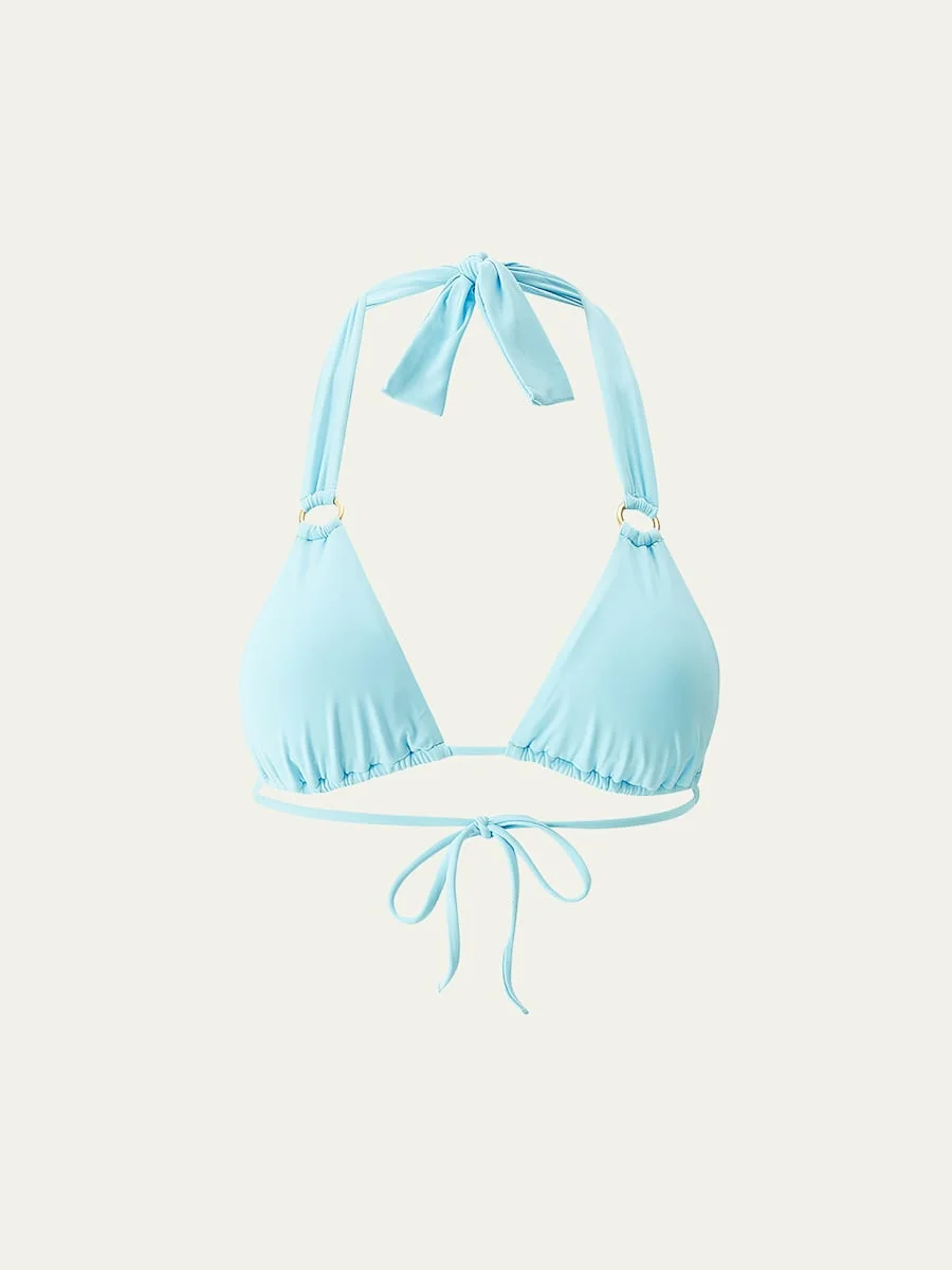 Melissa Odabash "Caracas" bikini top accented with golden ring trims Halter neckline; self-ties behind the neck Removable soft cups Triangle cups slide on string Mid-back self-ties Nylon/polyamide/elastane Fully lined Hand wash Trim: Metal Made in Italy Bottoms sold separately Online Inquiries: BGS21_T6MZ4| Store Inquiries: #5015256