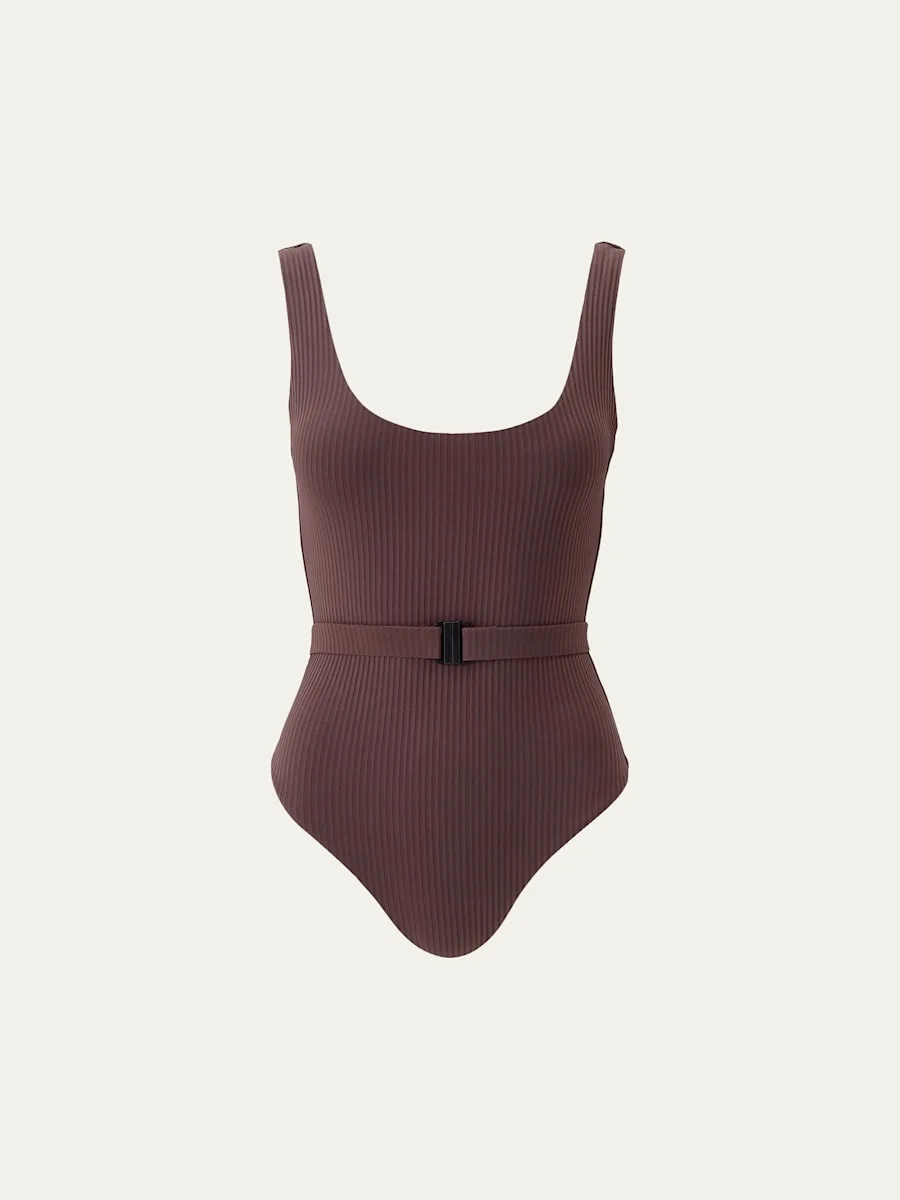 The "Rio" onepiece swimsuit by Melissa Odabash features refined ribbing and a selfbelt detail Faceframing square neckline Unpadded Moderate seat coverage Nylon/polyamide/elastane Fully lined Hand wash Trim: Metal Made in Italy