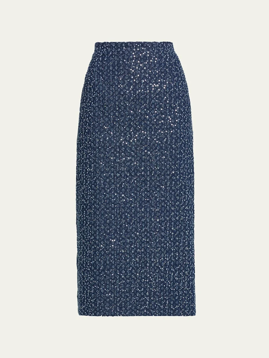 Sequin Straight Cotton Midi Skirt
