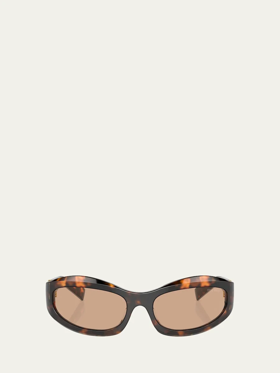 Miu Miu "14ZSF" oval sunglasses in acetate Featuring a contemporary wrap-around shape Solid-color lenses Logo on temples Thin, tapered arms Spot clean Each pair of sunglasses comes with a cleaning cloth and case to clean and protect your sunglasses from scratches and damage. 100% UVA/UVB protection Made in Italy Proposition 65 warning for California residents Online Inquiries: BGS21_D533F| Store Inquiries: #4924327