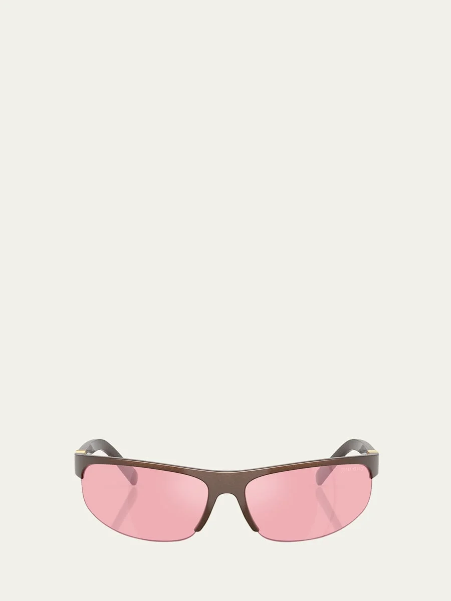 Miu Miu "A02S" semi-rimless oval sunglasses in plastic Solid-color lenses Logo on temples Thin, tapered arms Each pair of sunglasses comes with a cleaning cloth and case to clean and protect your sunglasses from scratches and damage. Spot clean 100% UVA/UVB protection Made in Italy Proposition 65 warning for California residents Online Inquiries: BGS21_D533C| Store Inquiries: #4924324