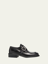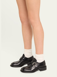 Miu Miu buffalo leather loafers 1.25 in / 30 mm flat heel Square apron toe Buckle strap vamp Rubber outsole Made in Italy Online Inquiries: BGS21_X6NEP| Store Inquiries: #4845327