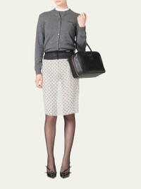 Knit from cozy cashmere, this sweater by Miu Miu features a contrasting embroidered logo at the left chest Crew neckline Short sleeves Relaxed fit Hip length Pullover style Cashmere Made in Italy