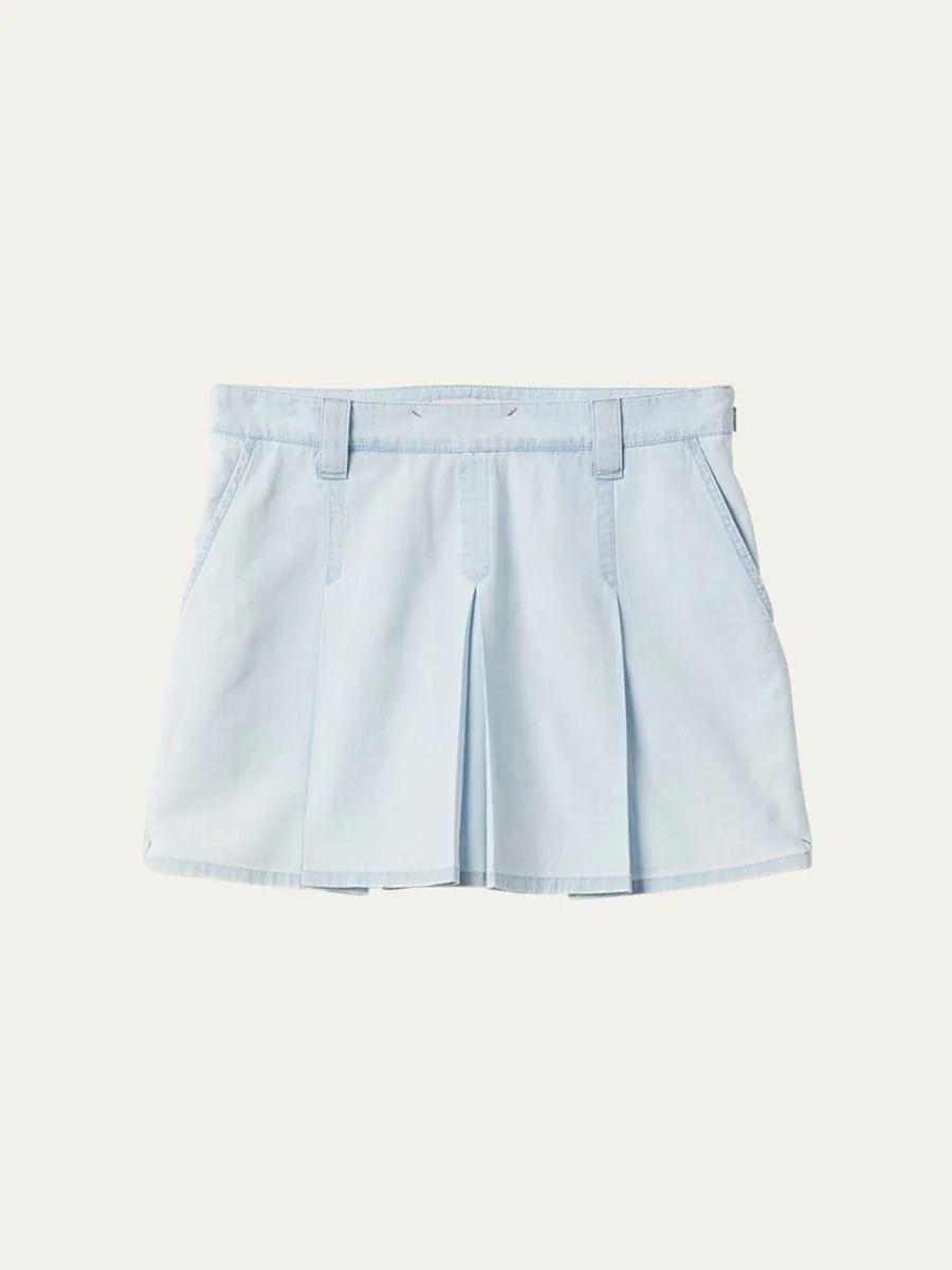 Large Pleated Short Chambray Skirt