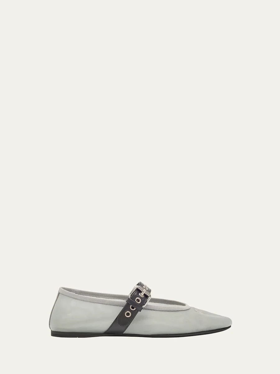 Mesh Buckle Mary-Jane Ballerina Flats