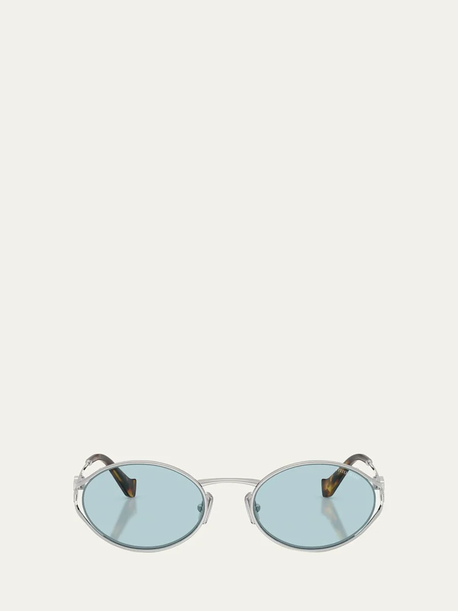 Miu Miu "MU 52YS" sunglasses feature a standard-fit oval silhouette with thin temples, offering a simple and elegant look perfect for everyday wear. Eye/bridge/temple (in mm): 54-21-125mm Monochromatic lenses Adjustable nose pads Signature stacked vertical logos on the temples Thin, tapered arms Capped earpieces 100% UVA/UVB protection Metal Spot clean Made in Italy Proposition 65 warning for California residents Online Inquiries: BGS21_D5B7B| Store Inquiries: #5057693