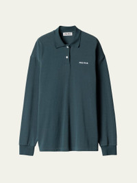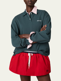 Miu Miu cotton pique polo shirt with logo embroidery Spread collar; button placket Long sleeves Oversized fit Side slits Pullover style Cotton Made in Italy Model is 5'10"/177cm. Online Inquiries: BGS21_B9978| Store Inquiries: #4813110