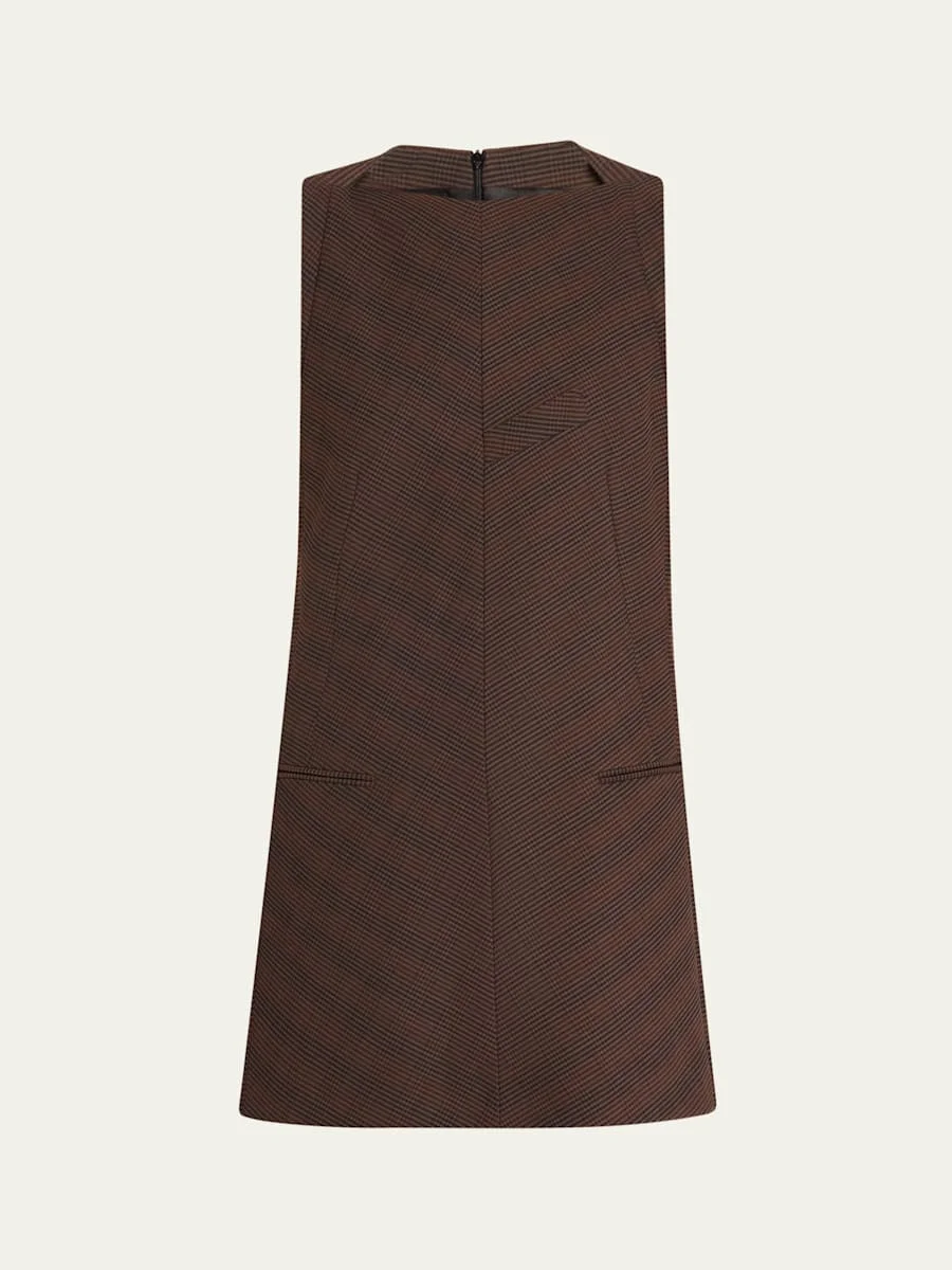 MM6 Maison Margiela structured wool-blend mini dress in plaid High neckline Sleeveless Welt pockets Shift silhouette Hem falls above the knee Center back zip Polyester/virgin wool/elastane Lining: Proviscose® rayon Dry clean Made in Italy Online Inquiries: BGS21_T6RQJ| Store Inquiries: #5014268