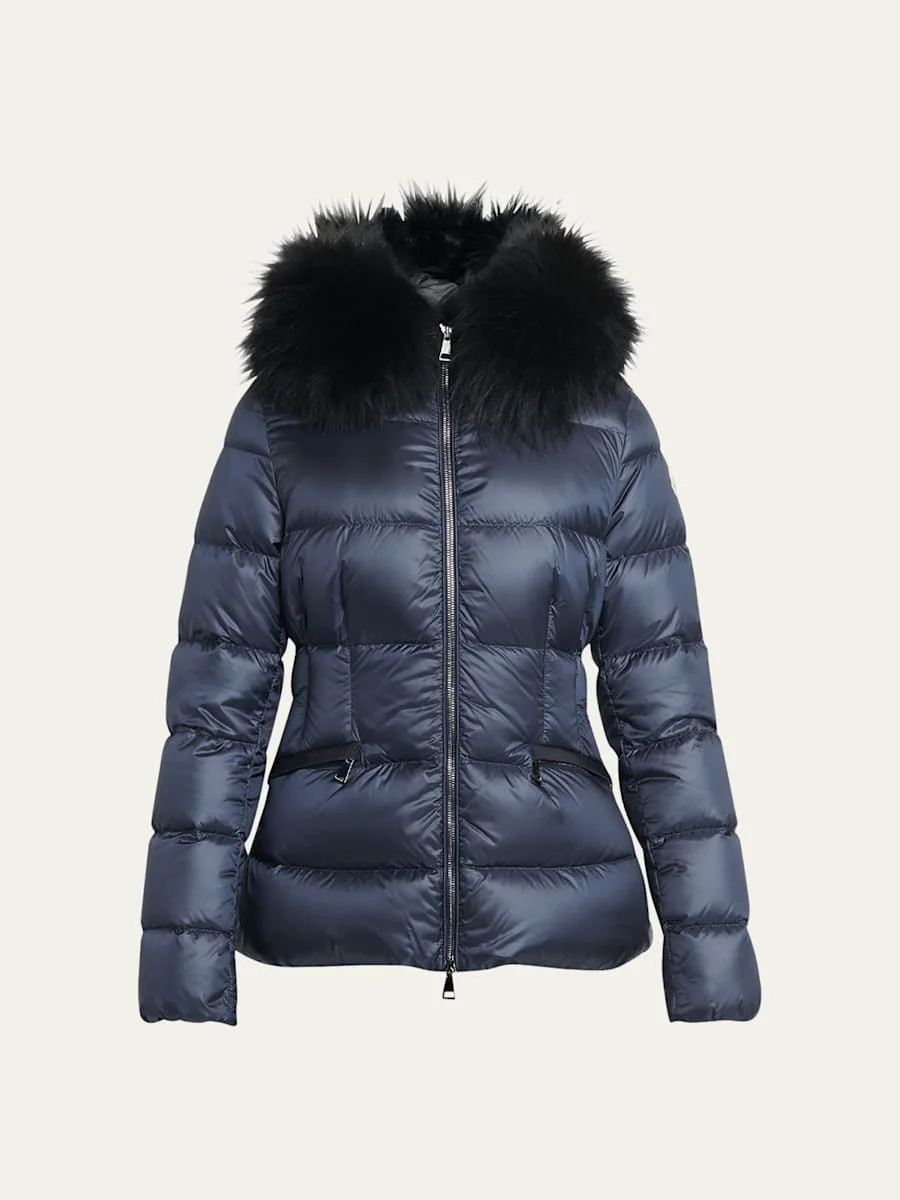 Boed Short Puffer Jacket with Shearling Hood Trim