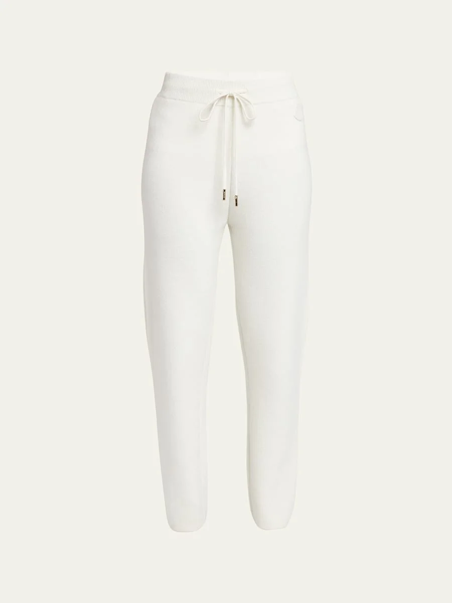 Moncler cozy sweater-knit pants Mid-rise drawstring waistband Tonal hip logo patch Full length Tapered legs Pull-on style Virgin wool/cashmere Made in Bulgaria Model is 5'10"/177cm. Online Inquiries: BGS21_T5G3H| Store Inquiries: #4716186