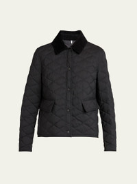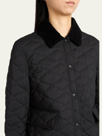 Moncler "Citno" quilted lightweight down jacket enhanced with a corduroy collar Long sleeves Hip flap pockets Loose fit Hem sits at the hip Snap-fornt Polyester/cotton Fill: Feather/down Lining: Polyester Dry clean Imported Online Inquiries: BGS21_T6WG0| Store Inquiries: #5051042