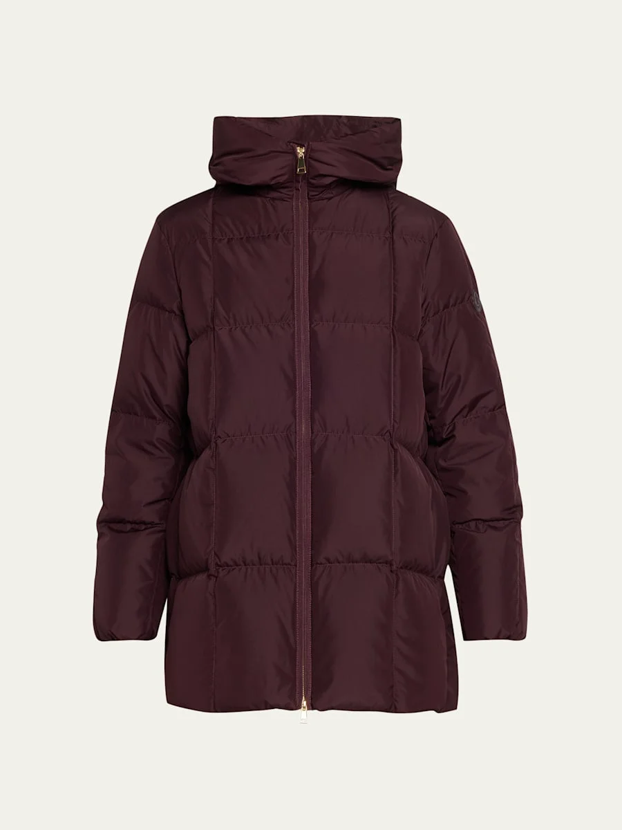 Moncler "Darbon" quilted puffer jacket enhanced with gold-tone hardware Hooded neckline Long sleeves Features tonal leather logo patch on the left sleeve Oversized fit Mid-thigh length Two-way zip-front Polyester/leather Fill: Down/feather Lining: Nylon Hand wash Imported Online Inquiries: BGS21_T6VRX| Store Inquiries: #5045308
