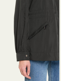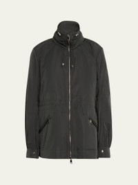 Moncler "Enet" parka jacket Removable hood with adjustable drawstrings Stand collar with adjustable drawcords Two-way front zip Logo patch at left sleeve Long sleeves; snap cuffs Elasticized waistband Slanted side zip pockets Polyester Lining: Polyester Dry clean Imported Model is 5'10"/177cm. Online Inquiries: BGS21_T5EW2| Store Inquiries: #4706947