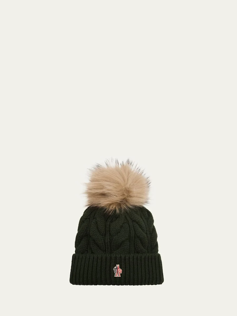 Cable-Knit Wool-Cashmere Beanie with Shearling Pom
