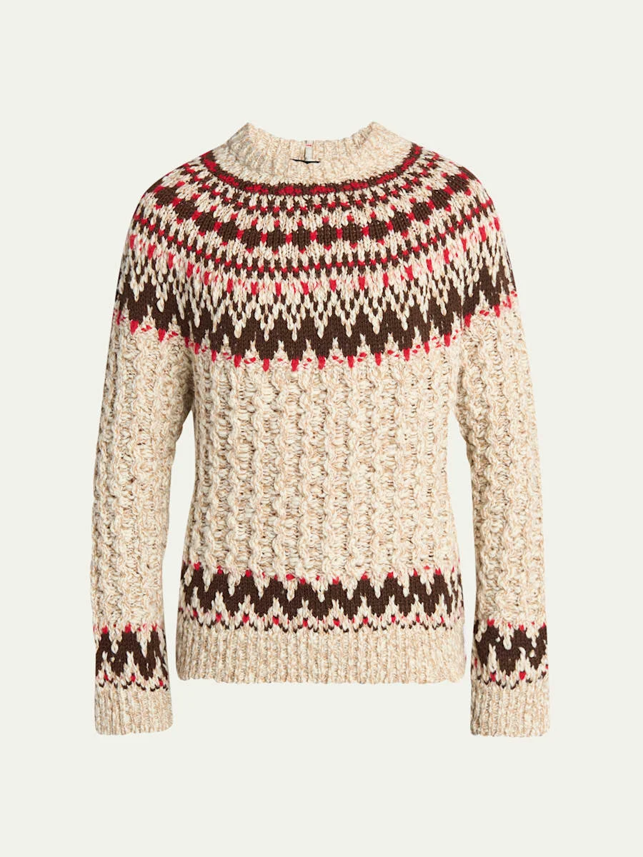 A modern take on an alpine classic, this Moncler Grenoble Fair Isle cable-knit sweater blends rugged warmth with refined ski-lodge style Crew neckline Relaxed fit Pullover style Wool/nylon/elastane Professional cleaning recommended Made in Italy Online Inquiries: BGS21_NDMJR| Store Inquiries: #5049308