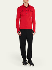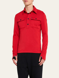 Moncler Grenoble polo shirt crafted from lightweight Polartec® fabric Breathable and moisture-wicking Spread collar Half button placket Chest pockets with buttoned flap closure Logo patch at sleeve Long sleeves with thumbholes Signature striped trim Polyester/elastane Unlined Machine wash cold Imported Model is 6'1"/185cm. Online Inquiries: BGS21_NC94E| Store Inquiries: #4834592
