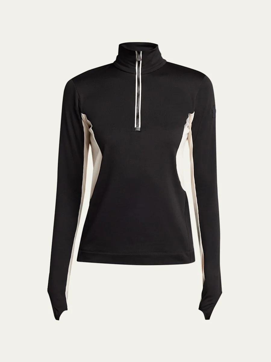 Crafted from Polartec® Power Grid™ fabric, this base layer from the Moncler Grenoble Collection is finished with a YKK® AquaGuard® highly waterresistant zipfront, delivering warmth and endless performance capabilities. Breathable with moisturewicking technology Turtleneck Long sleeves with wrist gaiters Signature logo patch on the left sleeve Slim fit hem sits at the hip Pullover style Polyester/elastane/nylon/polyamide Hand wash, lay flat to dry Made in Portugal