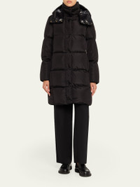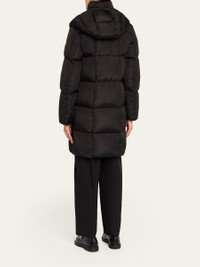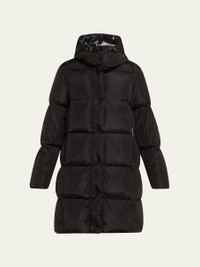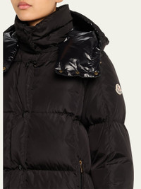 Moncler "Litte" quilted puffer coat enhanced with contrast lining and gold-tone hardware Stand collar; zip-off hood Long sleeves Signature embroidered logo patch on left sleeve Side zip pockets Loose fit Mid-thigh length Two-way zip-front Nylon/polyamide Fill: Down/feather Lining: Nylon Machine wash cold Imported Online Inquiries: BGS21_T6VRR| Store Inquiries: #5045295