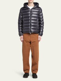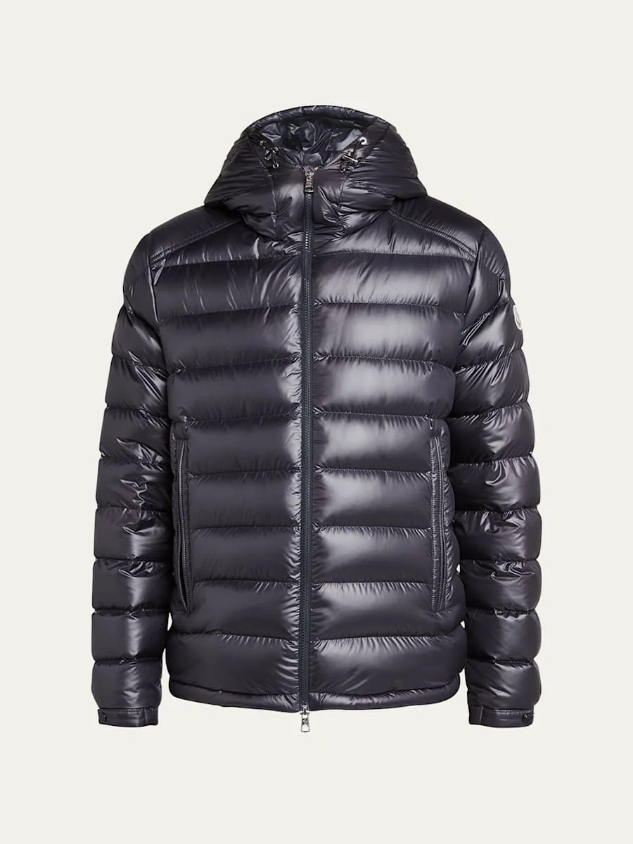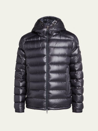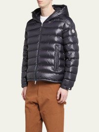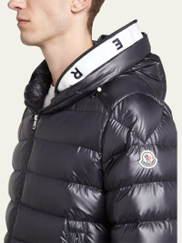 Moncler "Besines" short puffer jacket Adjustable hood Two-way zip closure Zip pockets Long sleeves with snap cuffs Logo patch at left sleeve Nylon/polyamide/polyester Lining: Polyester Goose down/feather fill Machine wash cold Made in Italy Model is 6'1"/185cm. Online Inquiries: BGS21_NC8WW| Store Inquiries: #4833463