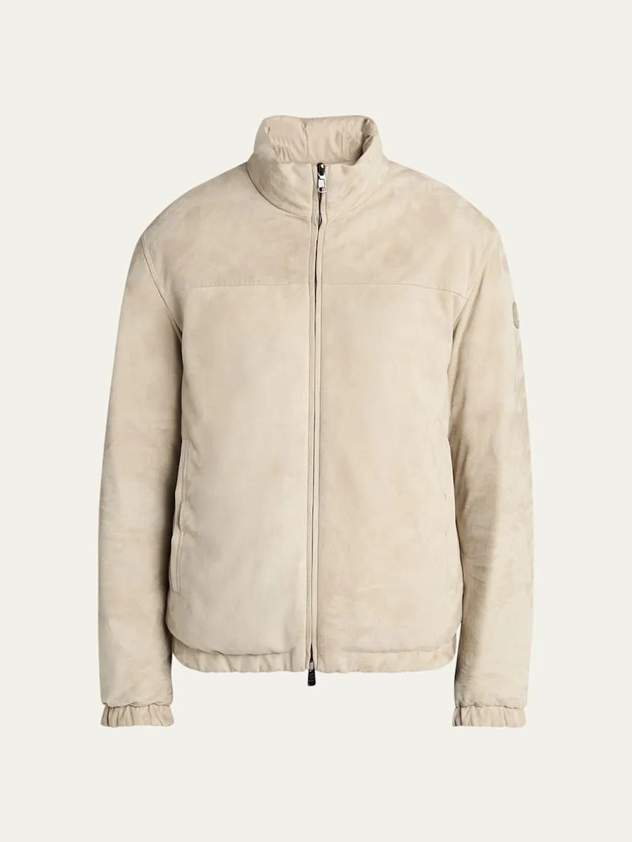 This reversible jacket from Moncler is meticulously designed to match your mood. Choose the smart suede of the "Cernay" or reverse the jacket to expose the down/feather channel quilt. Stand collar Exposed twoway zipper Logo patch on the left arm Side welt pockets on the front and reverse Cinched cuffs and hem Leather Reverse: Polyester Professional cleaning recommended Made in Romania