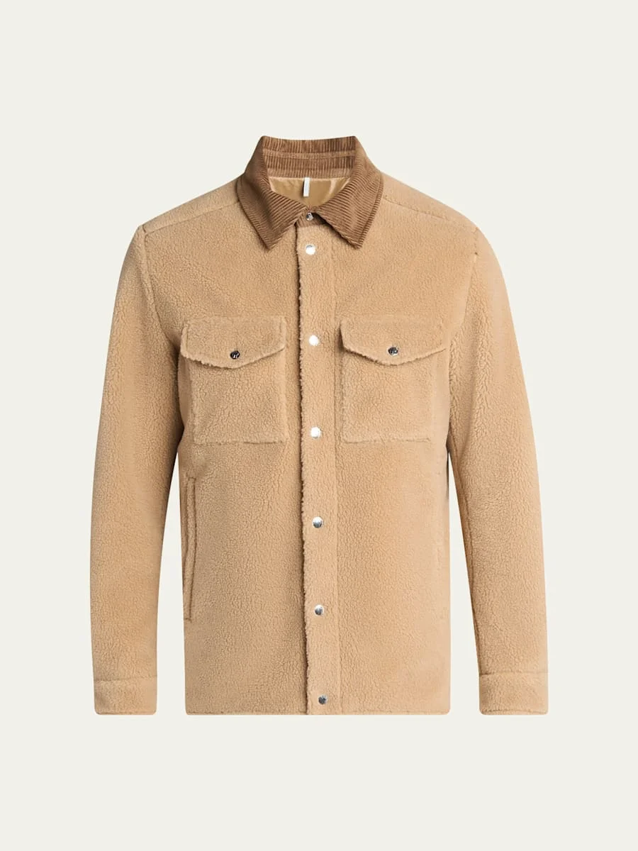 Men's Corduroy-Collar Boucle Shirt Jacket