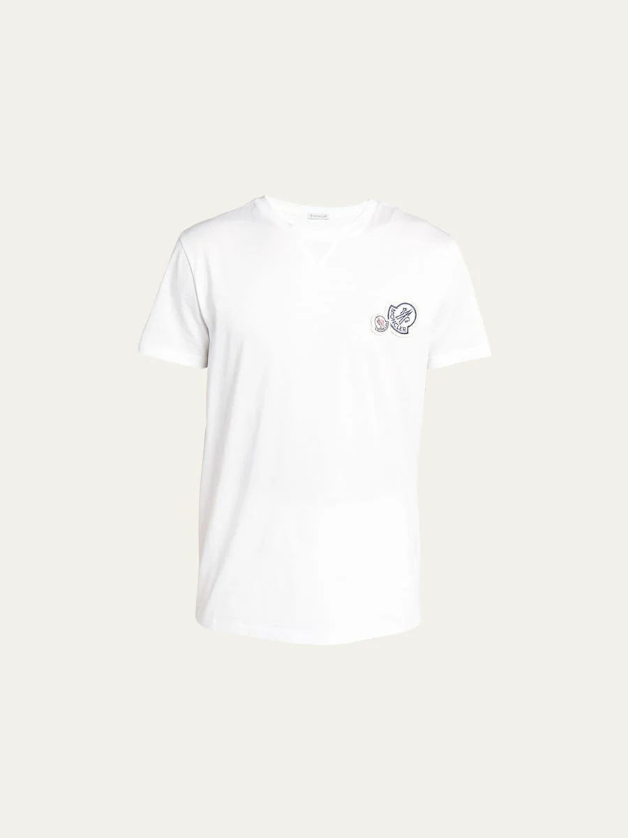 Moncler jersey t-shirt showcases a duo of felt logo patches on the chest Crew neckline Short sleeves Relaxed fit Pullover style Cotton Professional cleaning recommended Imported Model is 6'1"/185cm. Online Inquiries: BGS21_NB4UC| Store Inquiries: #4584476