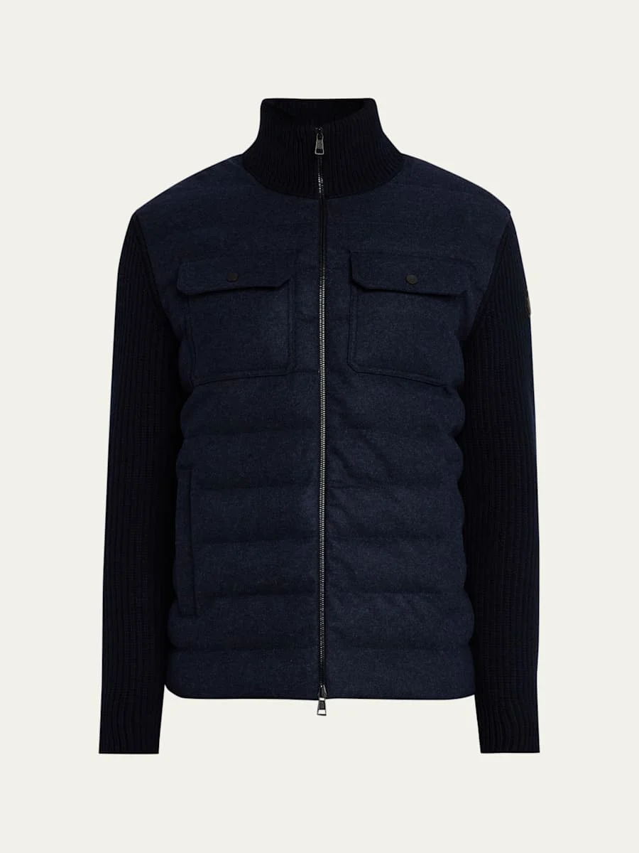 Men's Down-Filled Wool Knit Full-Zip Cardigan