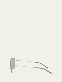 Moncler "ME4004" aviator sunglasses in steel Lens/bridge/temple (in mm): 5715145 Solidcolor lenses Left lens logo script Doublenose bridge Adjustable nose pads Thin arms Angular capped temple tips Steel 100% UVA/UVB protection Made in Italy
