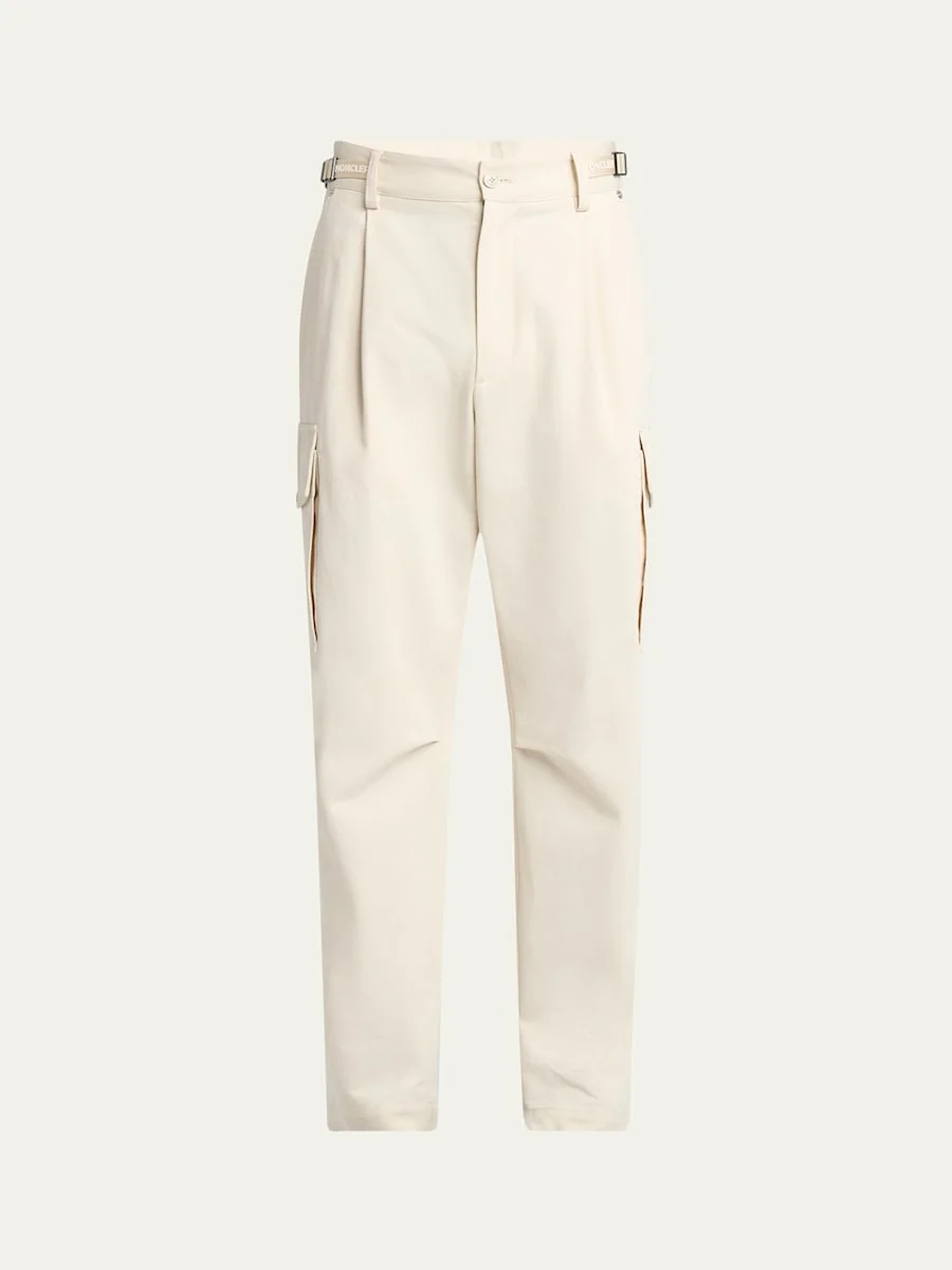 Moncler trousers in wool accented with functional cargo pockets and a sleek pleated front Branded waist adjusters High rise Side slip pockets Back flap pockets Classic fit through tapered legs Full length Buttonzip front; belt loops Virgin wool/polyester Lining: Polyester Professional cleaning recommended Made in Bulgaria