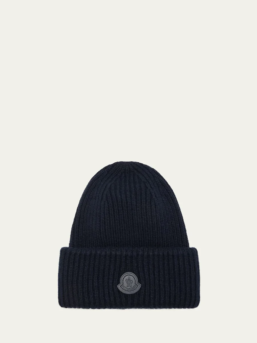 Moncler ribbed beanie hat Folded cuff with leather logo patch Cashmere Dry clean Made in Italy Online Inquiries: BGS21_NC8WX| Store Inquiries: #4833464