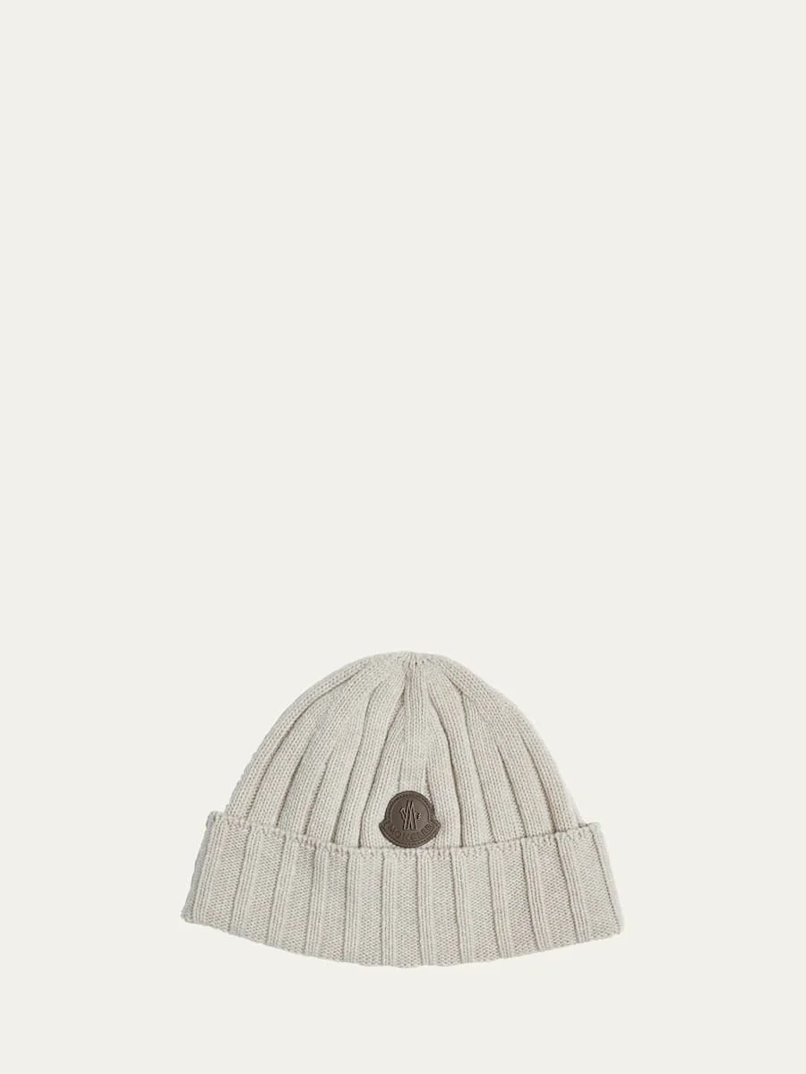 Moncler ribbed knit beanie hat Folded cuff with logo Leather/wool Professional cleaning recommended Made in Italy Online Inquiries: BGS21_NB6C2| Store Inquiries: #4593323