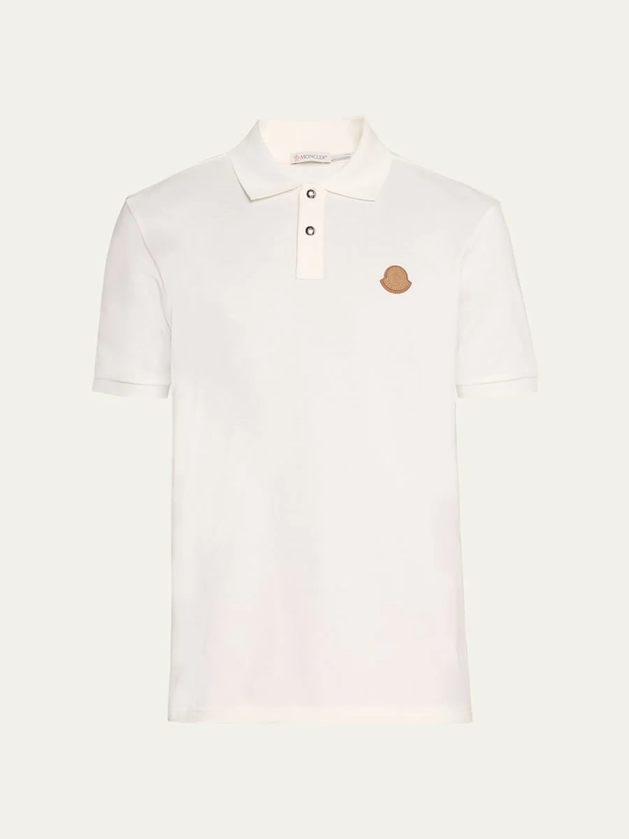 Moncler polo shirt in solid pique Ribbed collar and cuffs Branded twobutton placket Small leather logo patch at chest Short sleeves Cotton Dry clean, machine wash cold Imported