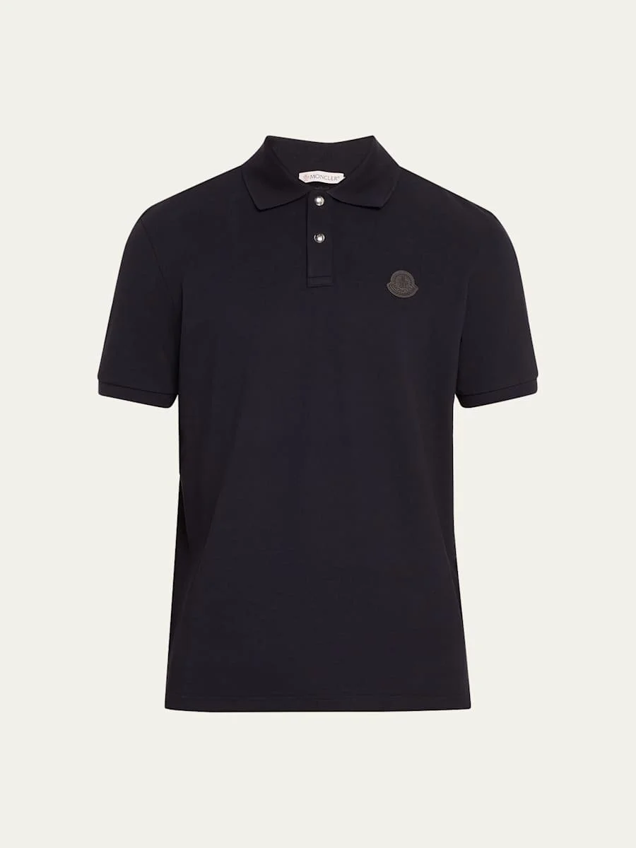 Moncler polo shirt in solid piqué Ribbed collar and cuffs Branded two-button placket Small leather logo patch at chest Short sleeves Cotton Dry clean, machine wash cold Imported Model is 6'1"/185cm. Online Inquiries: BGS21_NC8XY| Store Inquiries: #4833504