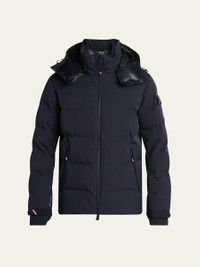 Moncler Grenoble "Montgetech" is a short down jacket crafted from water-repellent two-layer stretch nylon, engineered for skiing and snowboarding. Adjustable and detachable hood; fleece inner collar YKK® Aquaguard® highly water-resistant two-way front zip Long sleeves; adjustable cuffs with tricolor trim; flap pocket on sleeve Stretch jersey wrist gaiters Pockets with YKK® Aquaguard® highly water-resistant zipper closure Ski pass pocket with snap button closure Inner media pocket Powder skirt Drawstring hem Nylon/polyamide/elastane Lining: Polyester/nylon Fill: Down/feather Professional cleaning recommended, hand wash Made in Romania Online Inquiries: BGS21_NDHLB| Store Inquiries: #5040215