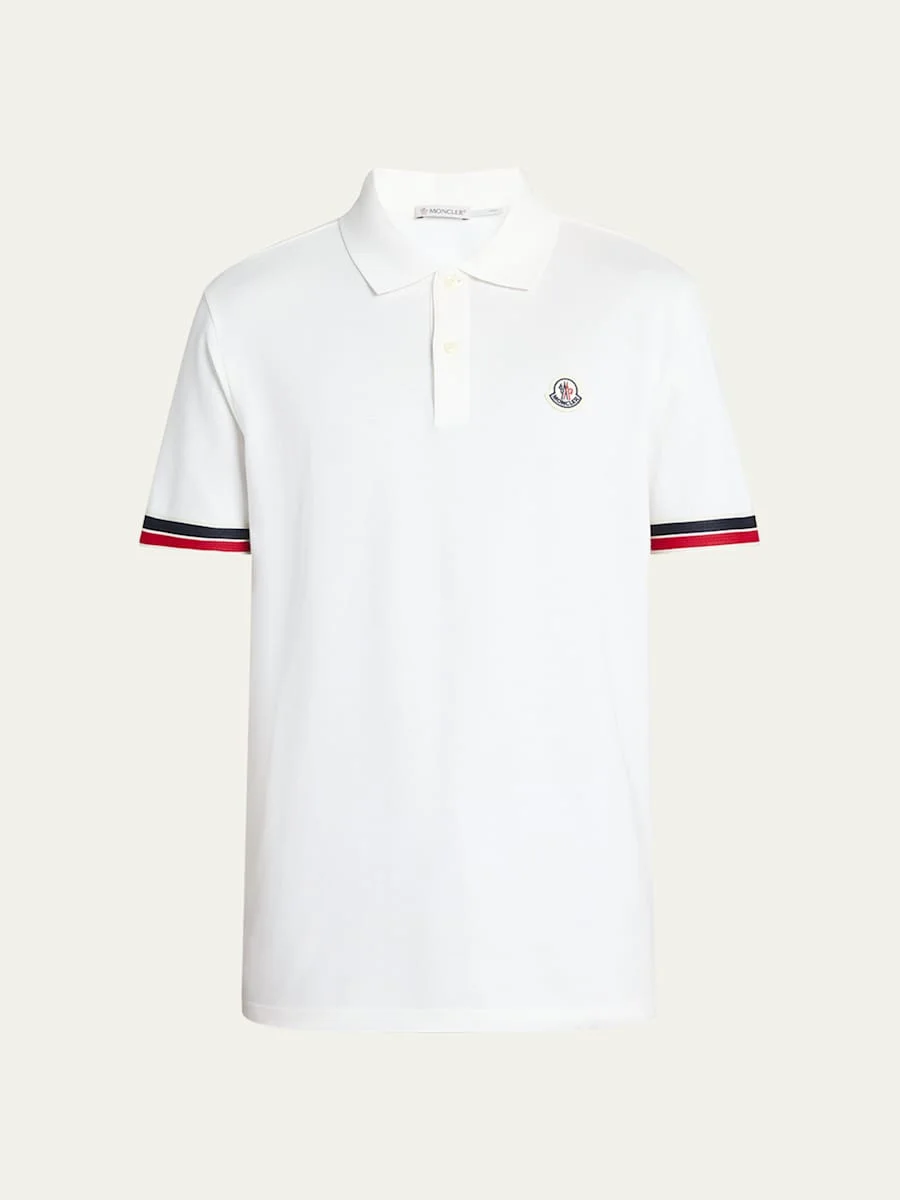 Moncler pique polo shirt with signature striped armbands Classic collar Two-button placket Classic felt logo patch Short sleeves Cotton Imported Online Inquiries: BGS21_NCSQ4| Store Inquiries: #4943704