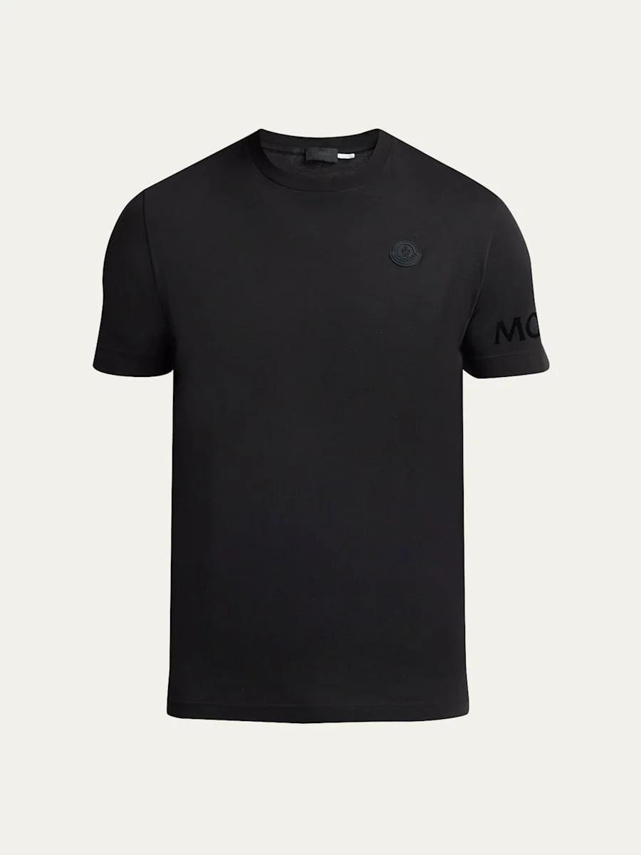 Moncler solid T-shirt in soft washed cotton characterized by subtle branding Logo emblem on the chest Crew neckline Short sleeves Tonal logo on the left sleeve Pullover style Cotton Professional cleaning recommended Imported Online Inquiries: BGS21_NDHW7| Store Inquiries: #5041171