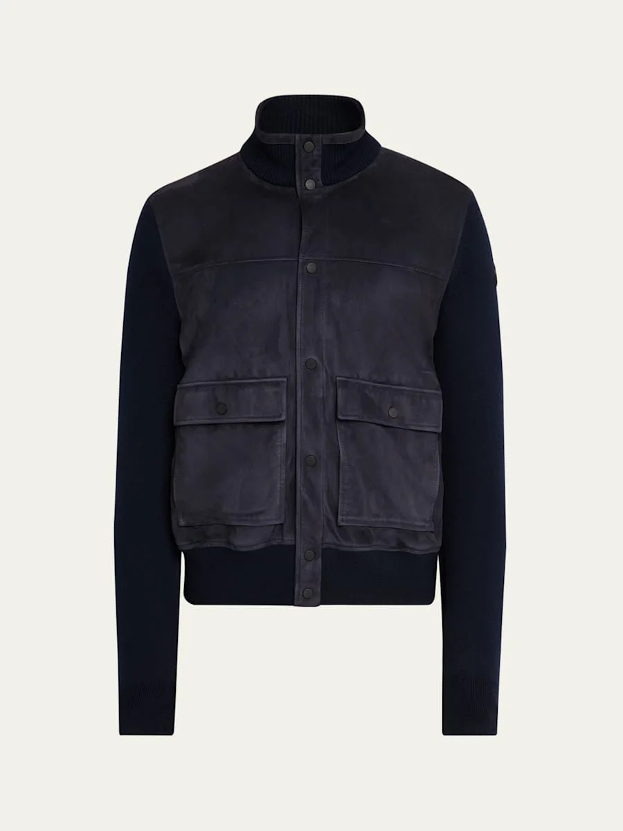 Men's Wool and Suede Snap-Front Cardigan