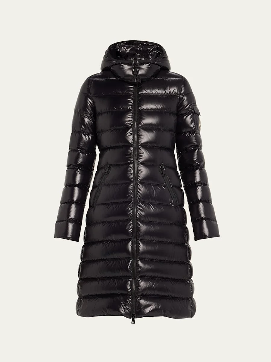 Moncler "Moka" puffer coat crafted from nylon laque with boudin quilting Detachable hood with adjustable drawcords Stand collar; two-way zipper closure Long sleeves Flap pocket with logo patch at left sleeve Zipped side pockets Hem hits around the knee Streamlined, slim silhouette Nylon/polyamide Nylon laque lining Fill: Down/Feather Dry clean Imported Model is 5'10"/177cm. Online Inquiries: BGS21_T5URU| Store Inquiries: #4830497