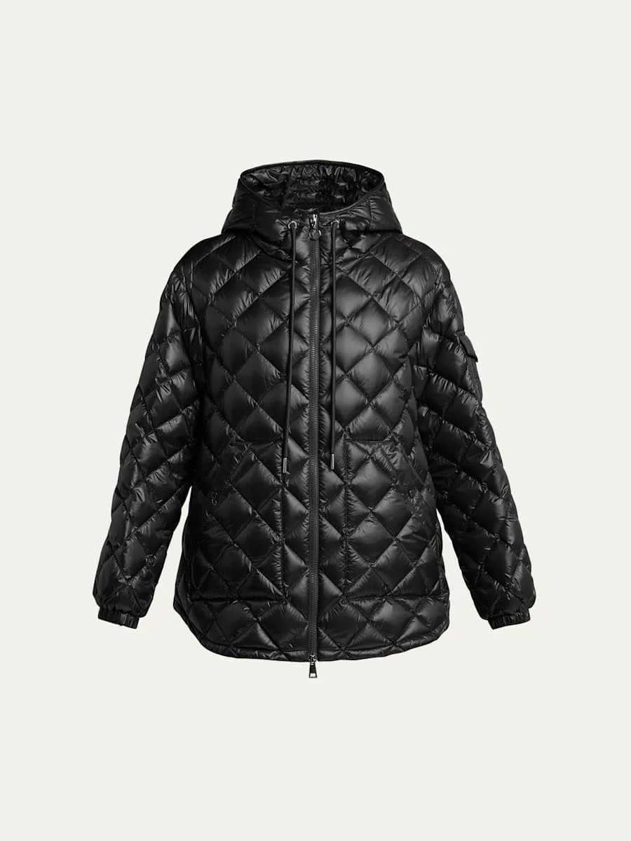 Moncler quilted down-filled jacket crafted from longue saison Adjustable drawstring hood Long sleeves with elastic cuffs Left sleeve pocket with embroidered logo patch Side snap pockets Relaxed fit Two-way zip-front Nylon/polyamide Fill: Down/feather Lining: Nylon Hand wash Imported Online Inquiries: BGS21_T6V4A| Store Inquiries: #5040789